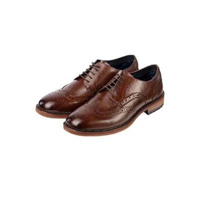 100% leather upper and a rubber cleated outsole Leather textile linings for added comfort Lace up style and burnished brogue detailing Available in 2 attractive colours - Tan or Brown Ideal for smart occasions such as weddings, meetings, christenings and other formal events Premium leather Available in sizes 7 to 12