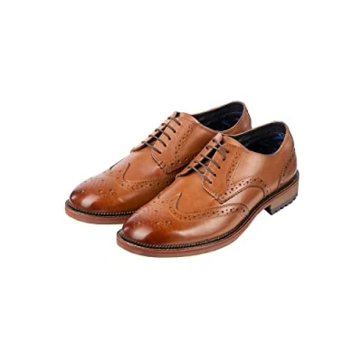 100% leather upper and a rubber cleated outsole Leather textile linings for added comfort Lace up style and burnished brogue detailing Available in 2 attractive colours - Tan or Brown Ideal for smart occasions such as weddings, meetings, christenings and other formal events Premium leather Available in sizes 7 to 12
