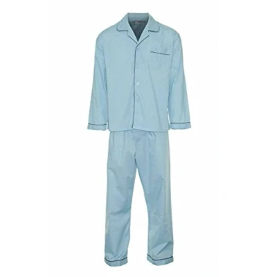 Men's Champion Plain Cotton Traditional Long Pyjama Set Blue, Navy UK Size S 5XL (Blue, 3XL)