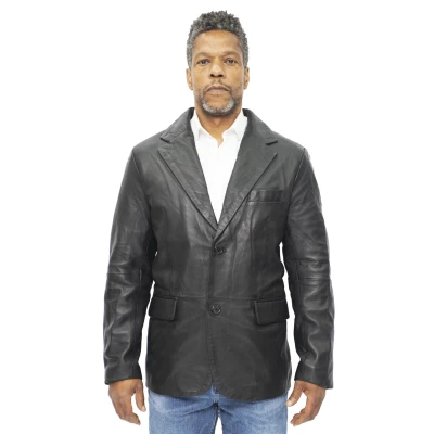 Men's Classic Tailored 2 Button Black Blazer Soft 100% Lamb Leather Jacket XS