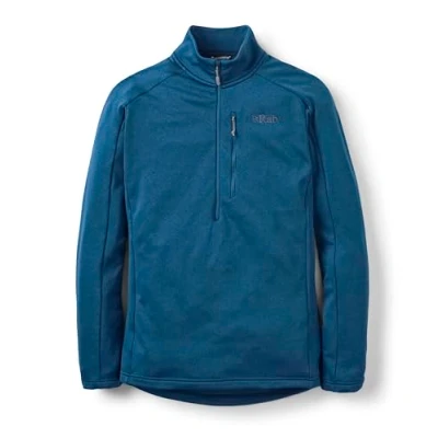 AmazonAll-Mountain Winter Fleece | Midlayer made of midweight fleece for climbing and hill walking in wintertime. Thermic Fleece | Fully recycled and brushed, Rab’s Thermic fleece wicks moisture and dries quickly for a solid all-mountain performance. Regular Fit | Designed as a midlayer, this pull-on’s regular fit is easy to toss a shell over, and it fits over baselayers of all weights. Trail-Ready Features | Half-zip enhances ventilation and eases on-and-off. Rolled cuffs and hem stay in place while layering. Zippered hand pockets provide secure storage. Flatlock seams feel nice and smooth, and they reduce bulk while layering. Specs | [Activities] Climbing, General Use, Hill Walking; [Fit] Regular; [Centre Back Length] (Medium) 76cm; [Weight] 424g.
