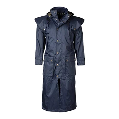 Men's Full Length Riding Coat Waterproof Long Horse Jacket With Cape 2 Colours (as8, alpha, m, regular, Dark Navy)