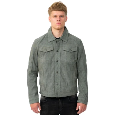 Introducing the epitome of rugged yet refined style, the Goat Suede Leather Denim Jeans Jacket. This unique jacket combines the durability of denim with the luxurious texture of goat suede, resulting in a striking and versatile piece. With a pointed collar and flap pockets on the chest, it exudes a classic and timeless appeal. The jacket also features two additional pockets on the lining for convenient storage options. Available in three captivating colours, it offers a range of options to suit different tastes. Expertly crafted and designed, this jacket effortlessly blends comfort, durability, and fashion-forward style. Whether worn casually or dressed up, the Goat Suede Leather Denim Jeans Jacket is sure to make a statement wherever you go. • Pointed collar for a classic and versatile look • Flap pockets on the chest for added style and functionality • Two pockets on the lining for convenient storage • Available in three captivating colours to suit individual preferences.