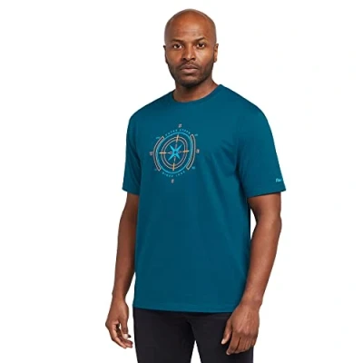 100% Cotton Jersey Construction: Crafted from soft, breathable cotton jersey fabric for maximum comfort during warm weather and casual wear Classic Crew Neck Design: Features a timeless crew neck style with short sleeves, perfect for relaxed summer days and everyday activities Linear Compass Print: Eye-catching printed compass design adds visual interest to this comfortable casual tee Cotton Jersey Tape Neck Seam: Reinforced neck seam construction provides enhanced durability and maintains shape after repeated washing Better Cotton Initiative: Supports sustainable cotton farming practices through the Better Cotton Initiative programme