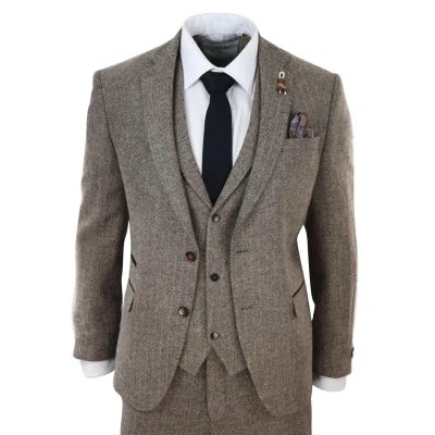 Mens Oak Brown 3 Piece Tweed Suit Vintage Harringbone 1920s Retro Peaky Blinders We are proud to introduce you to our own range of suits & tailoring, after working with numerous suppliers for over a decade we knew it was time to oficially launch our own product range to fill the gaps between whats already in the Market. We have depolyed our range of suits based on traditional styles with a Modern twist, selecting only the finist fabrics and working directly with manufacturers cutting out the middle men to bring you a top quality product at unbelievable prices!