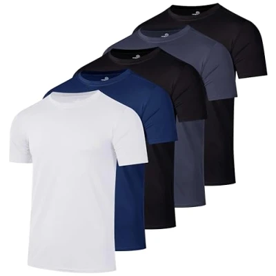 ACTIVE CREW T-SHIRTS: Elevate your workout gear with our pack of 5 men's athletic workout shirts. These camisas Para hombres provide the perfect blend of comfort and performance, whether you're in the gym, running on the track, or just doing errands. ATHLETIC STYLE: Look and feel great in the gym with our pack of 5 active workout t-shirts in solid colors. Perfect for layering or wearing alone, these shirts will give you the confidence you need to excel your workouts and lead in the gym. WORKOUT TRANSFORMER: Say goodbye to sweaty T-shirts with our quick-drying dry-fit fabric that wicks away moisture and keeps you cool and dry. The breathable dry fit material easily cools heat and feels super-soft on your skin WORKOUT WITH FREE MOTION: Enjoy a non-restrictive cut and 4 way stretch construction that allows for optimal range of motion, so you can tackle any activity with ease. Our shirts also feature a tag-free neckline for pure comfort training GYM STAPLES FOR MEN : Add some style to your gym wardrobe with our stylish and vibrant men’s athletic crewneck shirts. Designed with your comfort and performance in mind, these shirts are a true classic that will never go out of style.