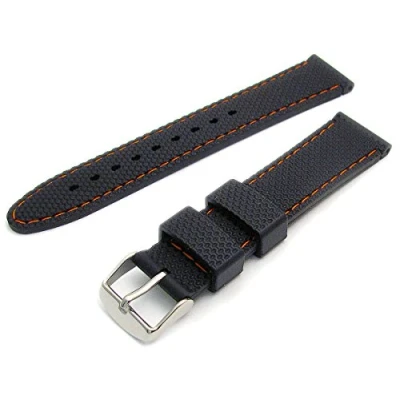 Men's Silicone Watch Strap Diamond Cut Pattern 20mm Wide Black with Orange Stitching C052