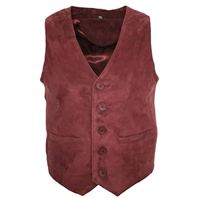 AmazonLightweight soft vest made from real durable goat suede leather 2 External Pockets 5 Button Fastening Shirt Style Collar Tailored Fit (In Between Slim and Regular Fit)