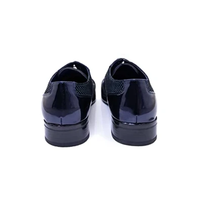 Men’s Two Tone Patent Leather Lined Shiny Formal Derby Dress Lace Up Shoes [EL0712 NAVY 8UK]
