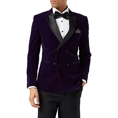 Men’s Velvet Double Breasted Tuxedo Suit Jacket Smoking Dinner Blazer Retro Classic Tailored Fit (42, Purple)