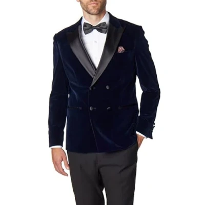 Men’s Velvet Double Breasted Tuxedo Suit Jacket Smoking Dinner Blazer Retro Classic Tailored Fit [BLZ SMITH NAVY 48UK]