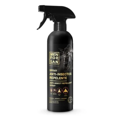 REPELLS AND ELIMINATES INFESTATIONS: Insect repellent spray for horses against infestations of all types of parasitic and flying insects (FLYES, MOSQUITOES AND LICE). With MARGOSA, GERNIOL AND GERANIOL, very effective natural repellents to naturally eliminate all types of insects. It also prevents mosquito bites later. ADVANTAGES: NEUTRAL pH, allowing frequent use. With very mild surfactants and incorporates natural collagen. Pleasant citrus fragrance. INSTRUCTIONS FOR USE: Apply once a day to stabled horses. In times of greater insect proliferation and on outdoor horses, spray twice a day all over the horse's body, avoiding the eyes and mucous membranes, from a distance of 20 centimeters. MENFORSAN: At Menforsan we care about the health of animals and the care of the planet, which is why we create natural vegan friendly products of the best quality.