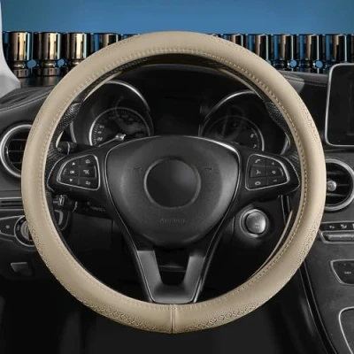PREMIUM COWHIDE: Auto Wheel cover is made of pure cowhide, natural, skidproof, stable. the entire steering wheel has only one interface! it is a perfect gift for birthday, christmas or any other suitable occasion. SLIP RESISTANT: Natural cowhide patterned embossed design, bump lines and double texture on the surface, super soft and super elastic, exquisite workmanship, anti-slip design provides a better grip on the steering wheel, giving you more safety! EXCELLENT SAFETY: Eco-friendly white rubber inner ring without terrible odour, comfortable and healthy, solid and non-slip, a better grip on the steering wheel gives you more control on the road. UNIVERSAL: Suitable for most of steering wheel with 14.76inch-15inch in diameter for cars, SUV, truck and pick up, except for more than 15inch. EASY INSTALLATION: Car steering wheel cover is easy to install with 3 steps. just cover the steering wheel with the product from the top, pull it to cover the whole steering wheel, and adjust the product to snugly fit on the steering wheel.