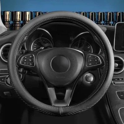 PREMIUM COWHIDE: Auto Wheel cover is made of pure cowhide, natural, skidproof, stable. the entire steering wheel has only one interface! it is a perfect gift for birthday, christmas or any other suitable occasion. SLIP RESISTANT: Natural cowhide patterned embossed design, bump lines and double texture on the surface, super soft and super elastic, exquisite workmanship, anti-slip design provides a better grip on the steering wheel, giving you more safety! EXCELLENT SAFETY: Eco-friendly white rubber inner ring without terrible odour, comfortable and healthy, solid and non-slip, a better grip on the steering wheel gives you more control on the road. UNIVERSAL: Suitable for most of steering wheel with 14.76inch-15inch in diameter for cars, SUV, truck and pick up, except for more than 15inch. EASY INSTALLATION: Car steering wheel cover is easy to install with 3 steps. just cover the steering wheel with the product from the top, pull it to cover the whole steering wheel, and adjust the product to snugly fit on the steering wheel.