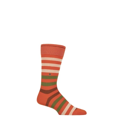 Mens 1 Pair Burlington Blackpool Multi Striped Cotton Socks Orange 6.5 11