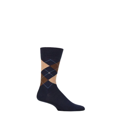 Mens 1 Pair Burlington Edinburgh Virgin Wool Argyle Socks Navy / Browns 6.5 11