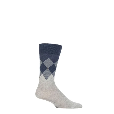 Mens 1 Pair Burlington Hampstead Cotton Argyle Socks Light Grey 6.5 11