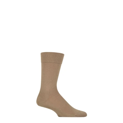 Mens 1 Pair Falke Sensitive London Cotton Left and Right Socks With Comfort Cuff Sesame 5.5 8