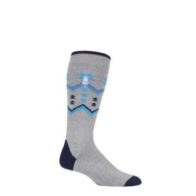 Mens 1 Pair SOCKSHOP Heat Holders 1.0 TOG Slalom Adventure Ultra Lite Ski Socks Grey Fairisle 6 11