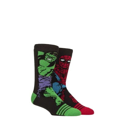 Mens 1 Pair SOCKSHOP Heat Holders 1.6 TOG Lite Marvel's The Hulk & Spider Man Thermal Socks Charcoal 6 11