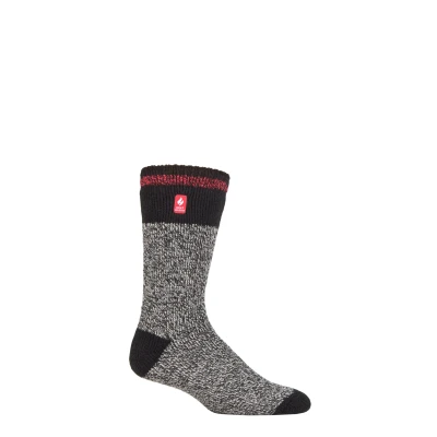 Mens 1 Pair SOCKSHOP Heat Holders 2.3 TOG Patterned and Plain Thermal Socks Porto Rugged Block Stripe Black / Red 6 11