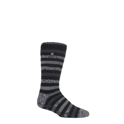 Mens 1 Pair SOCKSHOP Heat Holders 2.3 TOG Plain and Patterned Slipper Socks Stripe Black / Charcoal 6 11