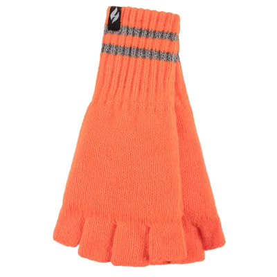 Mens 1 Pair SOCKSHOP Heat Holders 3.2 TOG Workforce Fingerless Gloves Bright Orange One Size