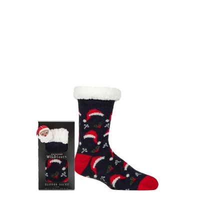 Mens 1 Pair SOCKSHOP Wildfeet Christmas Slipper Socks in Santa Patterned Gift Box Hats 7 11