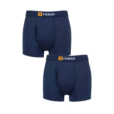 Mens 2 Pack Farah Classic Striped and Plain Bamboo Keyhole Trunks Navy XXL