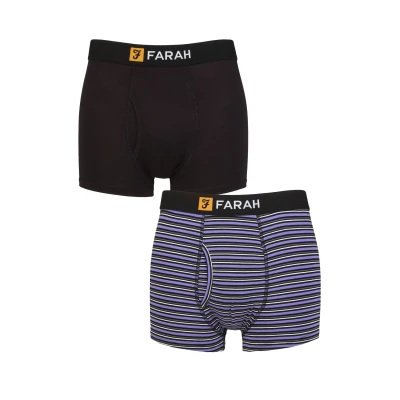 Mens 2 Pack Farah Classic Striped and Plain Bamboo Keyhole Trunks Stripe Black / Purple S
