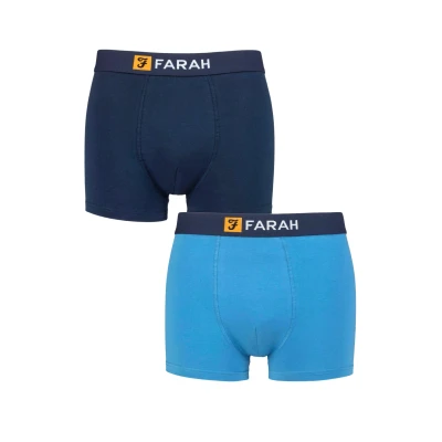 Mens 2 Pack Farah Cotton Classic Fitted Trunks Dark Navy / Blue L