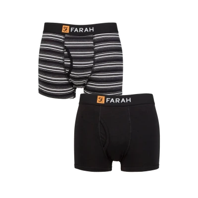 Amazon2 Pack Keyhole fly Soft brushed, gentle hold waistband Tagless care label for zero irritation; Farah branded waist; Timeless, heritage inspired style; Soft and breathable; 4cm long inseam Machine washable at 40°