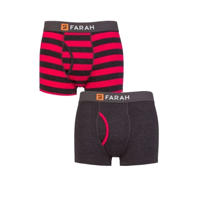 Mens 2 Pack Farah Plain and Striped Cotton Classic Keyhole Trunks Broad Stripe Charcoal / Red L