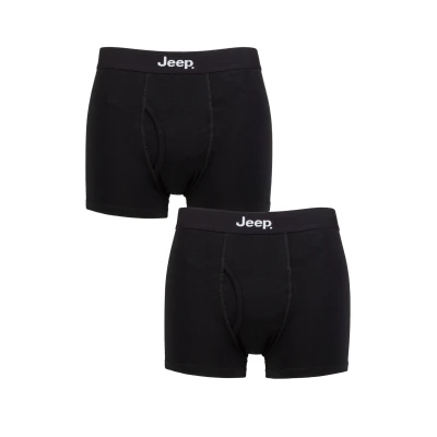 Mens 2 Pack Jeep Cotton Plain Fitted Key Hole Trunk Boxer Shorts Black / S