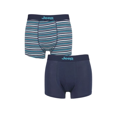 Mens 2 Pack Jeep Plain and Fine Striped Fitted Bamboo Trunks Navy / Turquoise Extra Large