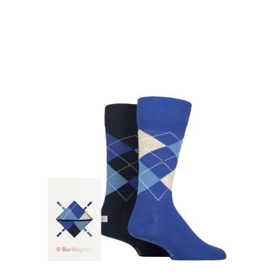 Mens 2 Pair Burlington Argyle Gift Boxed Cotton Socks Blue 6.5 11