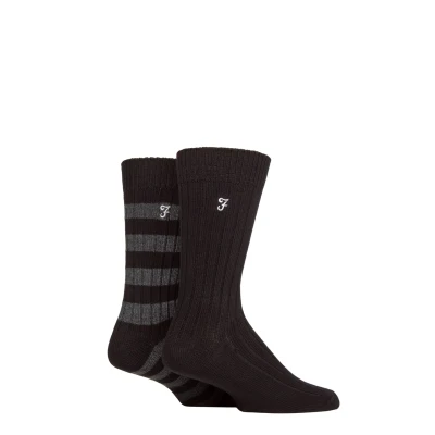 Mens 2 Pair Farah Bamboo Boot Socks Black / Charcoal 6 11