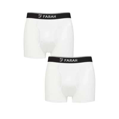 Mens 2 Pair Farah Plain and Stripe Bamboo Keyhole Trunks White / S