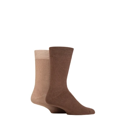 Mens 2 Pair Glenmuir Bamboo Cushioned Leisure Socks Brown / Light 7 11