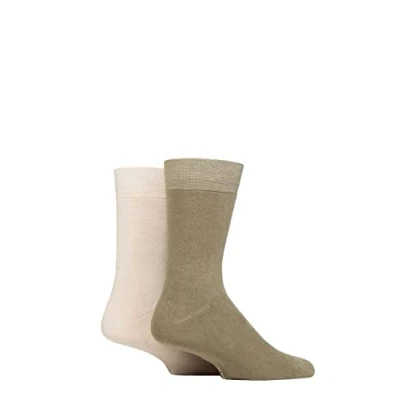 Mens 2 Pair Glenmuir Bamboo Cushioned Leisure Socks Green / Stone 7 11