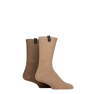 Mens 2 Pair Glenmuir Classic Boot Socks Beige / Brown 7 11