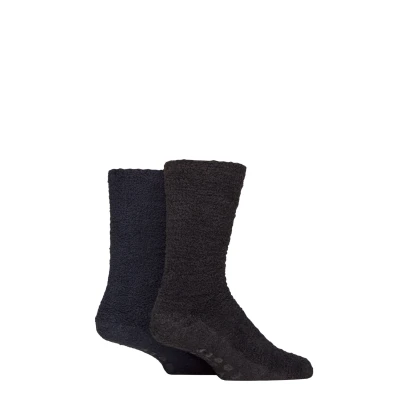 Mens 2 Pair SOCKSHOP Wildfeet Cosy Lounge Socks Black / Navy 7 11