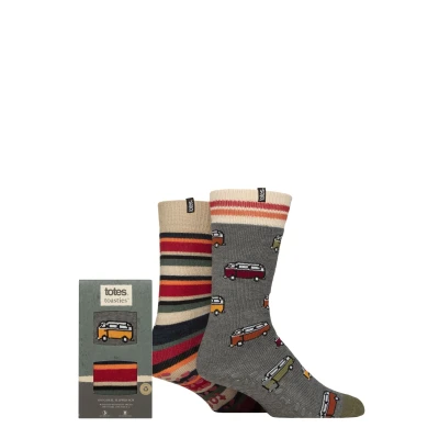 Mens 2 Pair Totes Original Plain and Patterned Slipper Socks Campervan 7 12