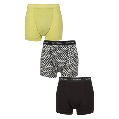 Mens 3 Pack Calvin Klein Cotton Stretch Trunks Green Bloom / Plush Monogram White L