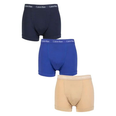 Mens 3 Pack Calvin Klein Cotton Stretch Trunks Shoreline / Clematis Travertine S