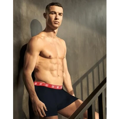 Men’s underwear fit for a soccer superstar! Scoring high in the style and comfort leagues, these three pairs of CR7 Cotton Trunks are made using a stretch jersey 95% organic cotton and 5% elastane mix. These trunks come from Cristiano Ronaldo‘s own clothing brand, so they’re sporty yet fashion-conscious and have up-to-the-minute looks. In a soft feel that’s highly breathable for cool comfort, and constructed for a structured, supportive build, the trunks in this multipack have smooth, soft elastic waistbands with the CR7 logo. With the perfect all-rounder fit, whether you’re out on the football pitch, enjoying a big screen game at the bar or just sat watching TV lounging at home, these boxers are designed to perform and built for it too.