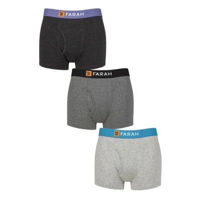 Mens 3 Pack Farah Cotton Keyhole Trunks Charcoal / Mid Grey M