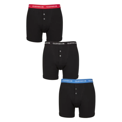 Mens 3 Pack Glenmuir William Button Front Cotton Boxer Shorts Black Contrast L