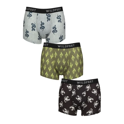 Mens 3 Pack SOCKSHOP Wildfeet Patterned Trunks Snake / Cactus Scorpion L