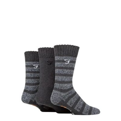 Mens 3 Pair Farah Striped Cushioned Boot Socks Charcoal / Grey 6 11